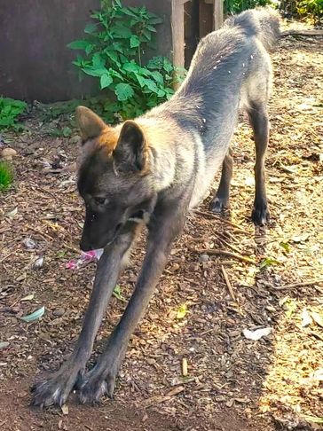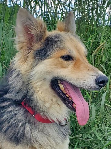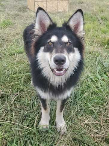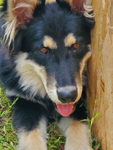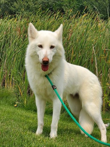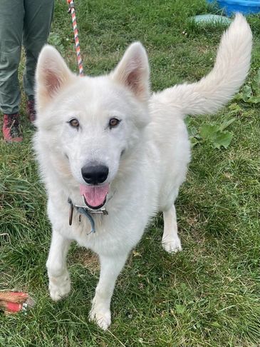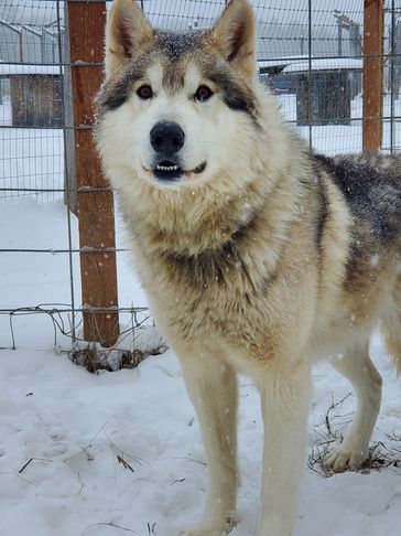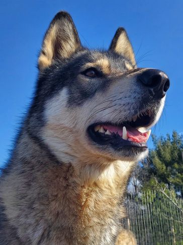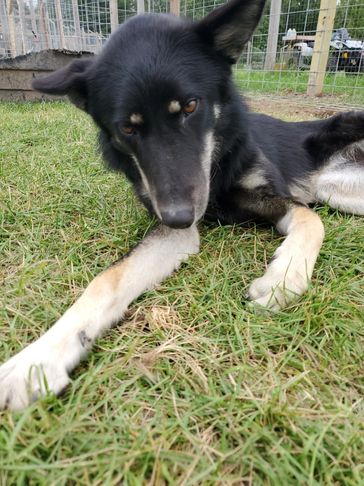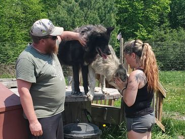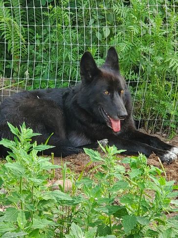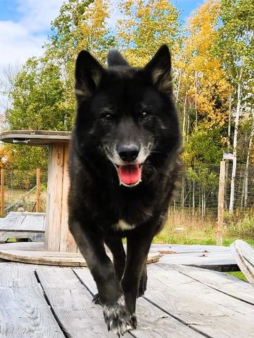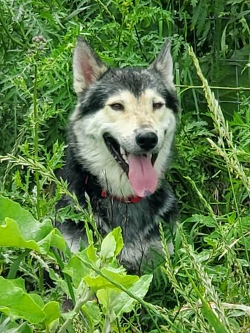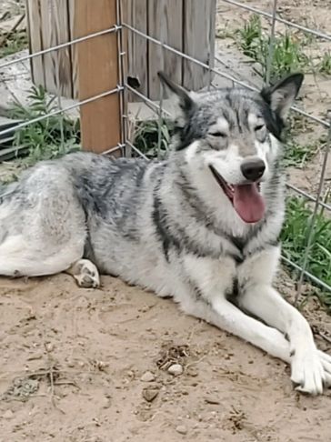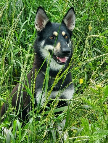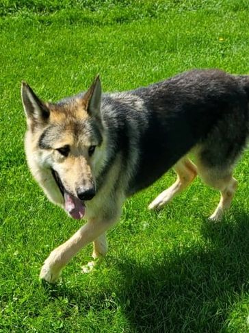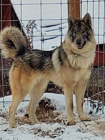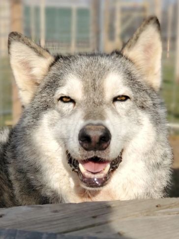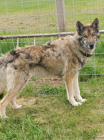 Moxie came from Indiana. She was trapped by animal control and tested to be a wolfdog so they couldn't adopt her out. She was very shy at first but now comes running for belly rubs and loves when she sees us!!! She loves being outside and has fit in very well.