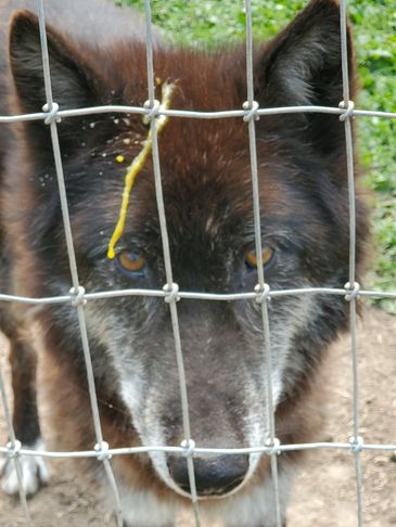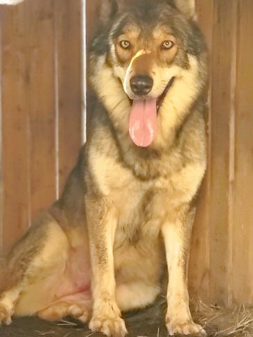Mia is one of our lowest content wolfdogs, but our biggest escape artist. If a pen is "Mia proofed" then no one is getting out! She is our resident hair stylist and loves to play with your hair..."gel" included free! She is a pure joy to have around and is so friendly with everyone.